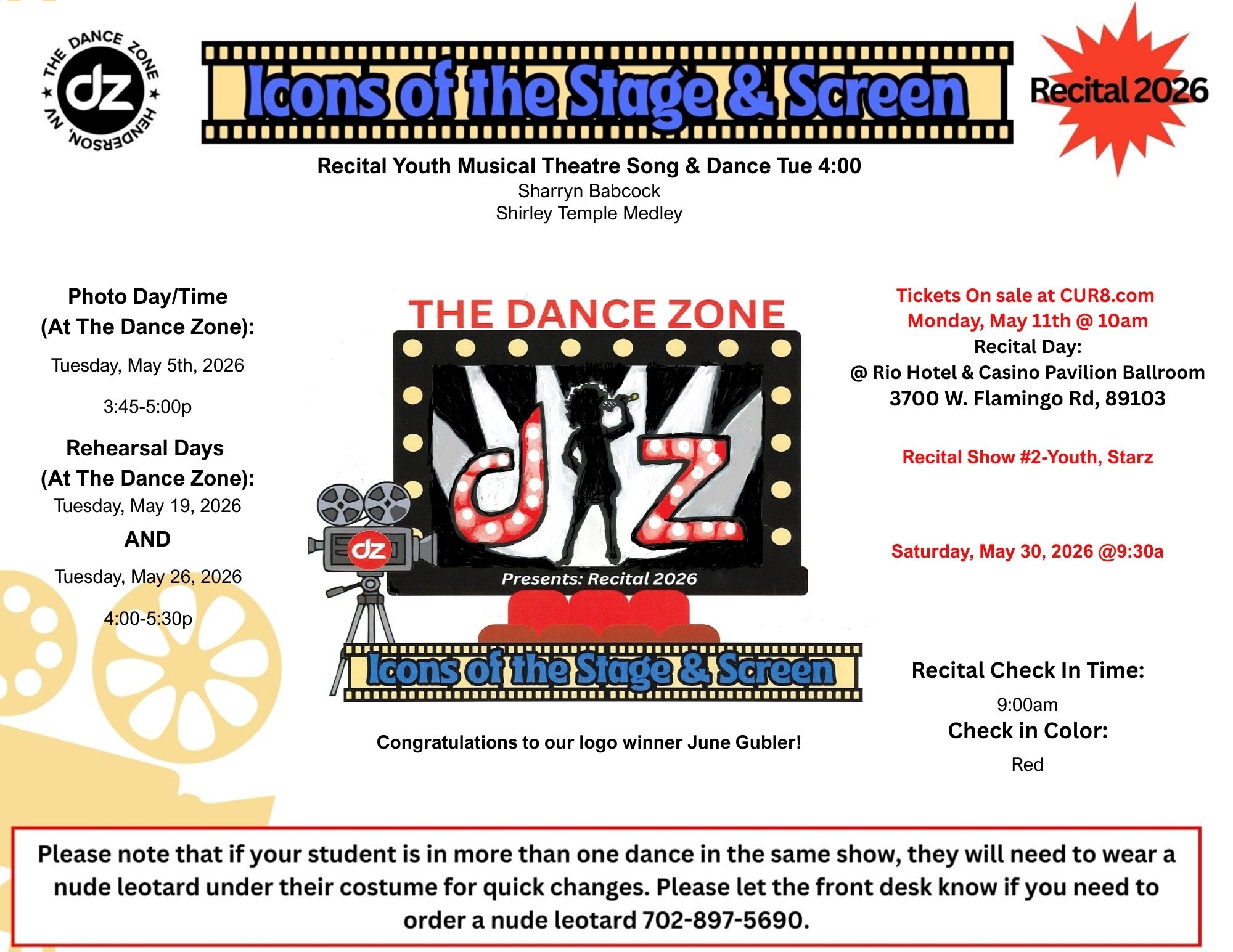 Recital Youth Musical Theatre Song & Dance Tue 4:00- Miss Sharryn