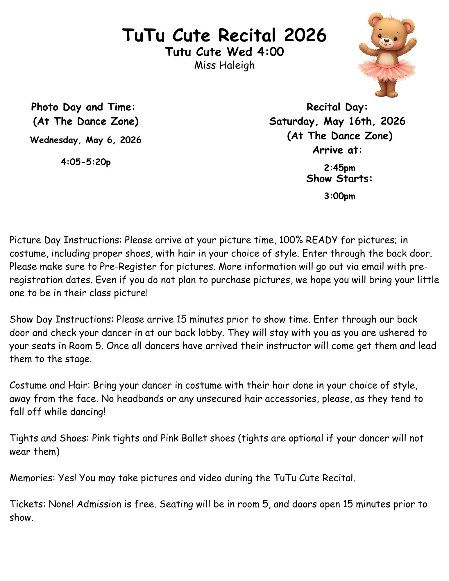 Tutu Cute Recital- Saturday, May 16th @The Dance Zone